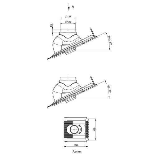 Produktinformationen "ATEC Schrägdachpfanne 360 x 395 mm 25-50 Grad, DN60/100 + 80/125, schwarz 1468"