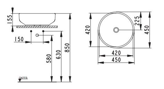 Weisse Keramikschale zur Installation auf einer Arbeitsplatte.