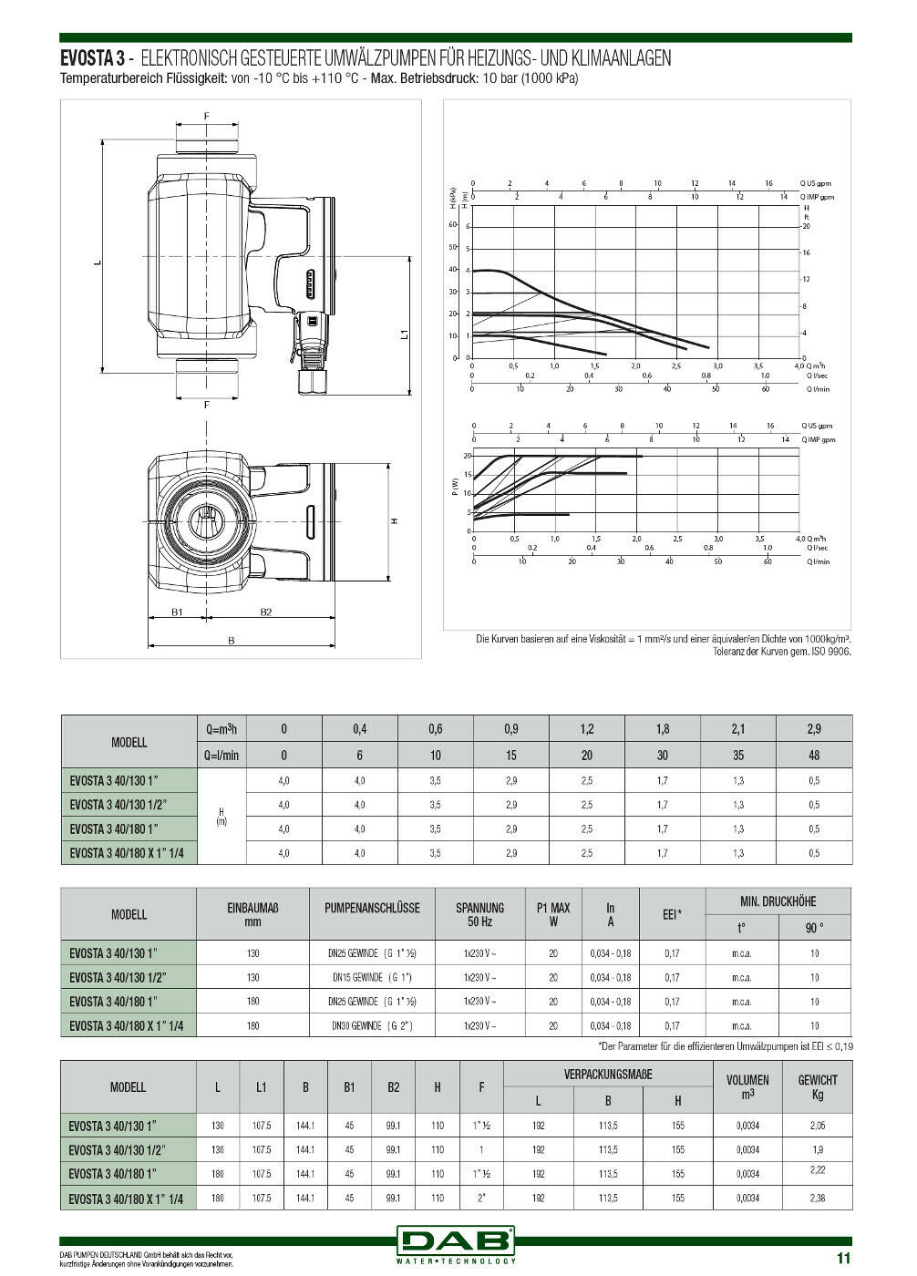 Produktinformationen "DAB Heizungspumpe Umwälzpumpe EVOSTA 3 40/180 60186077"