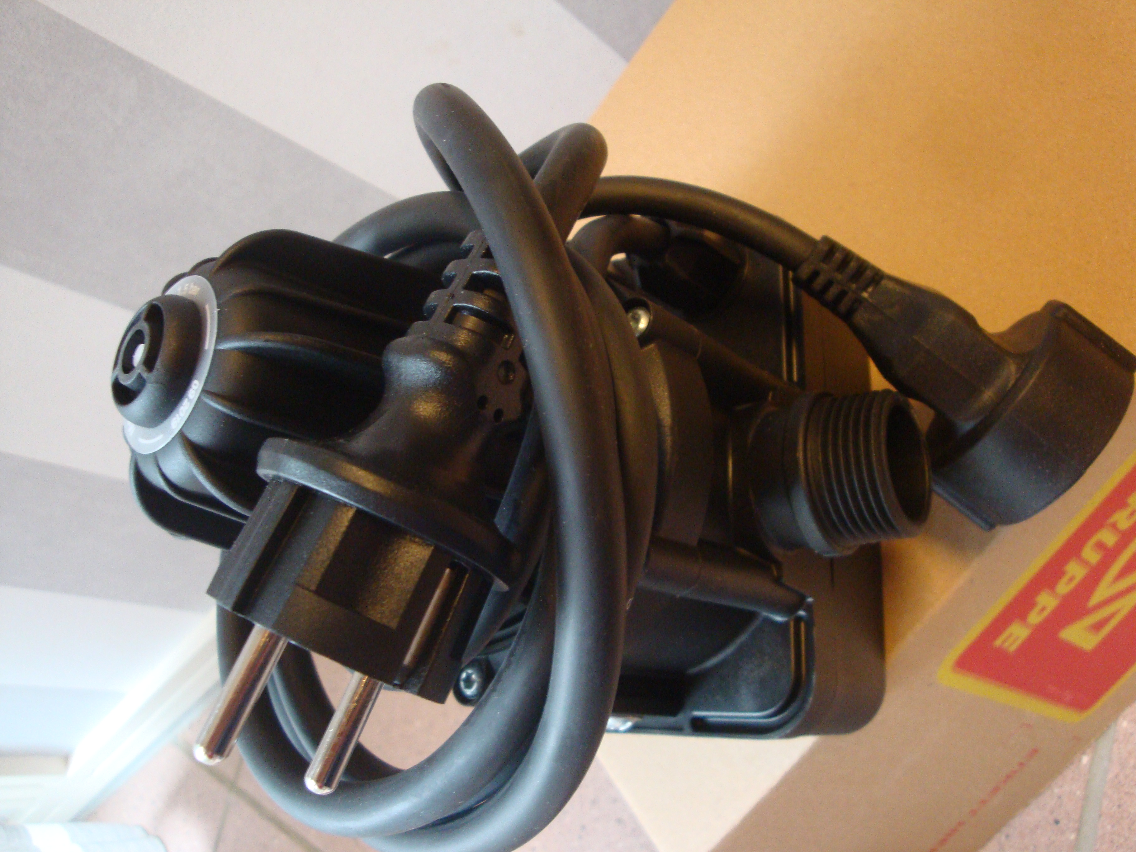 Das letzte Foto zeigt zwei Originalkartons. Einen von Ebara mit der Servopless LP Drucksteuerung und einen der Firma DAB. mit der Presscontrol Steuerung.