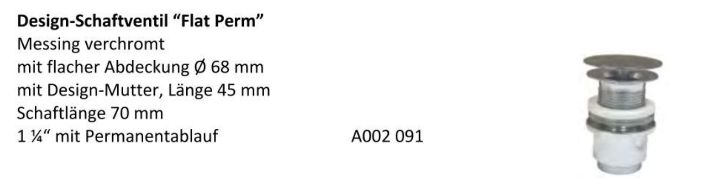 Produktinformationen "Design Schaftventil Flat Perm Zwangsablauf für Waschtisch Chrom"