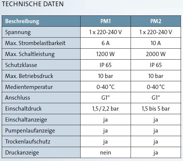 Der Druckmanager PM 2 ist der Alleskönner im Bereich der Drucksteuereinheiten. So bietet er u.a. einen zwischen 1.5 und 5 bar frei wählbaren Einschaltdruck und somit eine kundenspezifische Anpassungsmöglichkeit an unterschiedliche Installationen und Komfortansprüche. Der Einschalt-