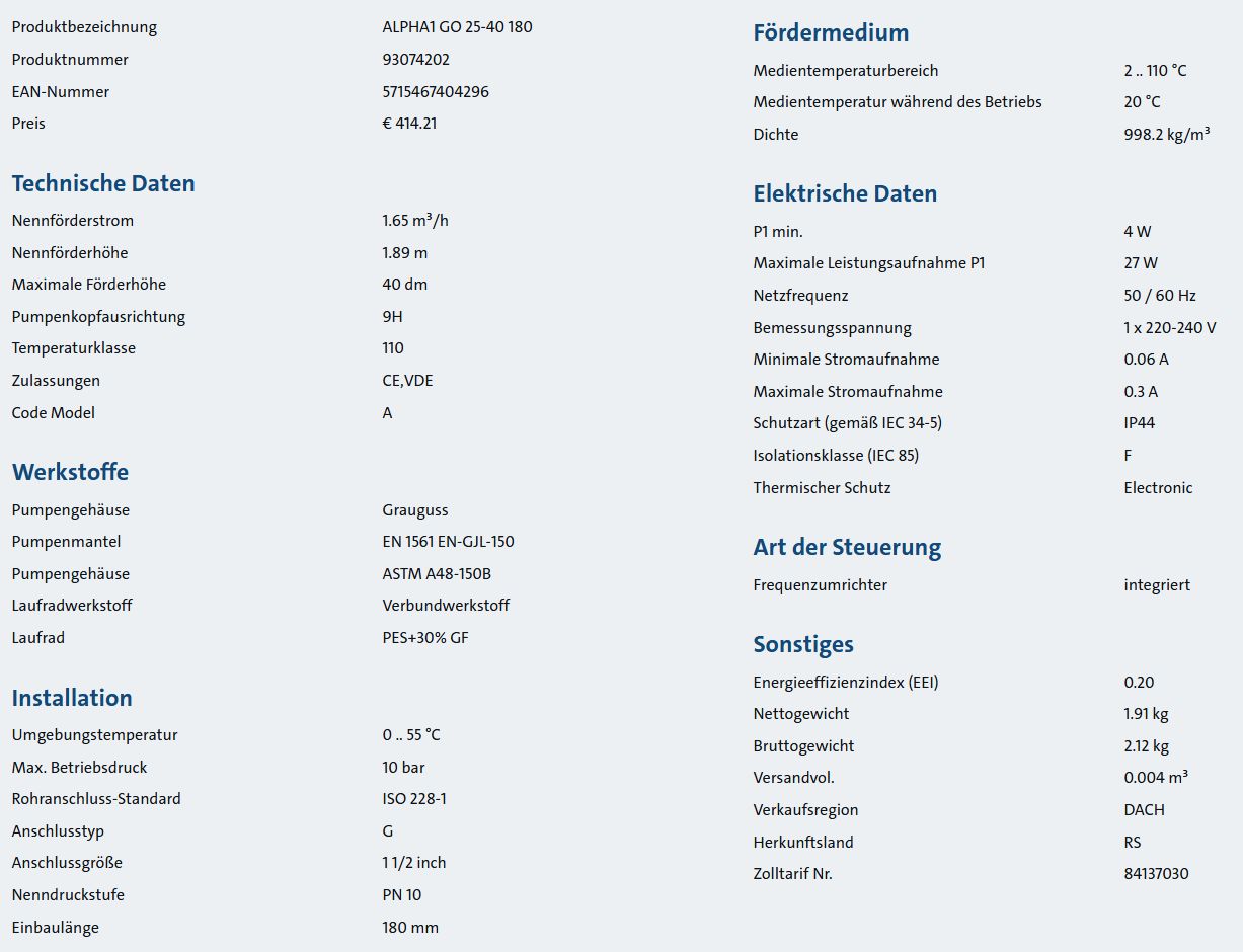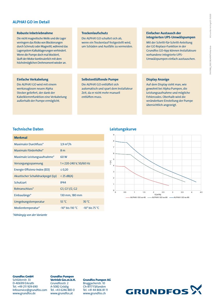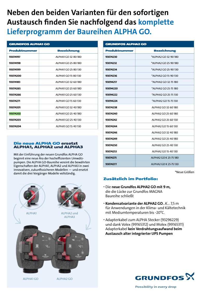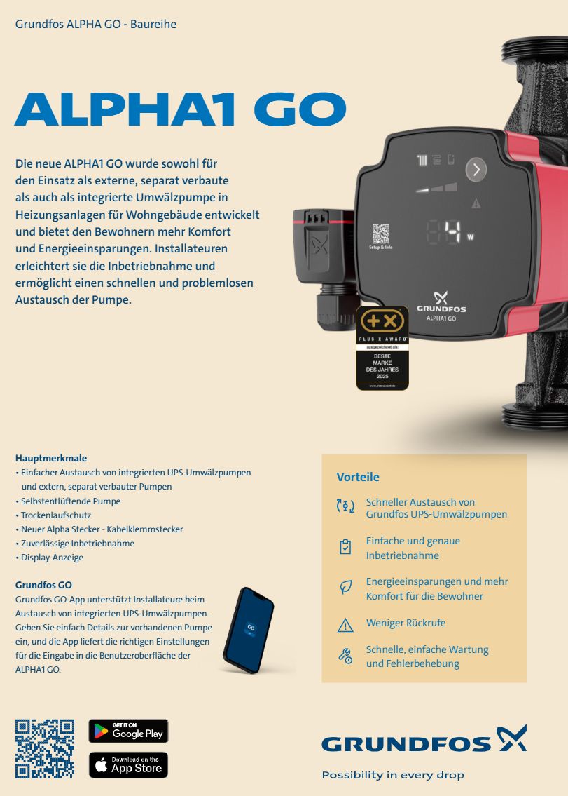 Produktinformationen "Grundfos Alpha 1 GO Heizungspumpe 25-40 / 180mm 9H DB0 93074202"