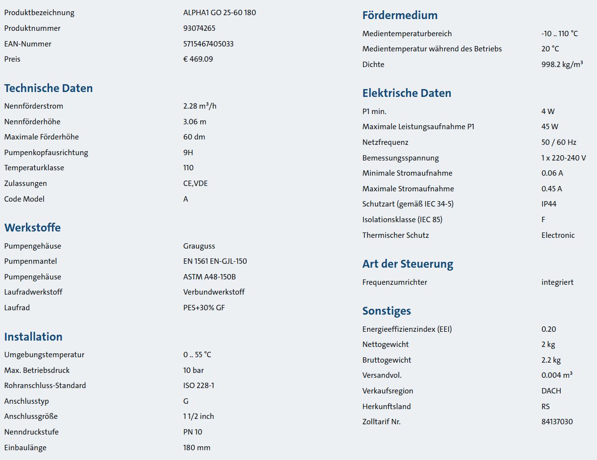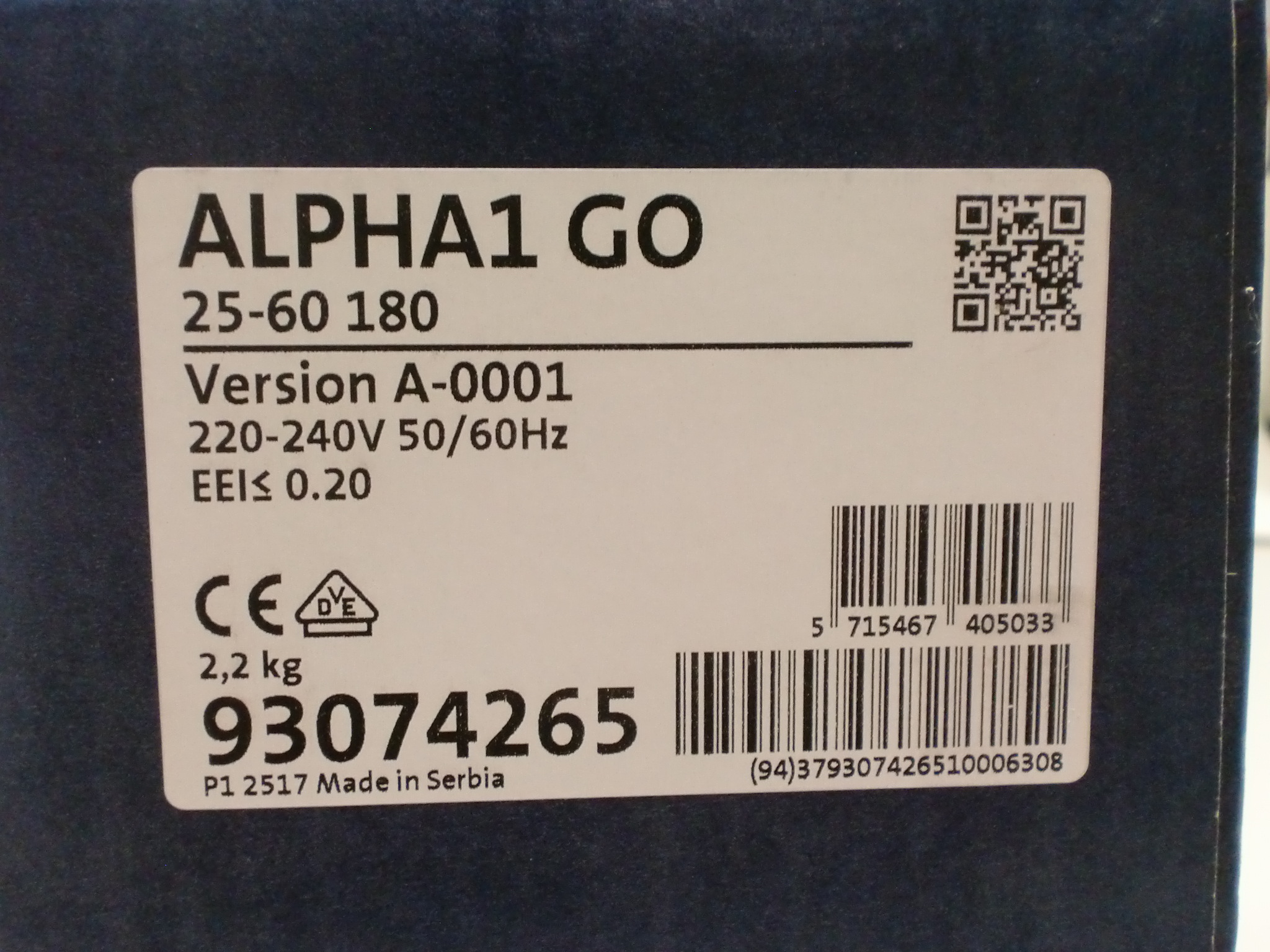 Produktinformationen "Grundfos Alpha 1 GO Heizungspumpe 25-60 / 180mm 9H DC0 93074265"