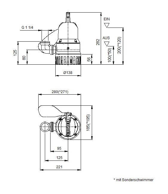 Schmutzwasser-Tauchmotorpumpe mit festem Schwimmer