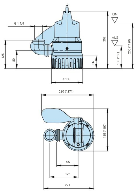 Einsatz Be- und Entwässerungsaufgaben in sauberem oder verschmutztem Wasser. Kellerentwässerung, Trockenhaltung von Gruben, Schächten, Räumen. Schmutzwasserentsorgung in Kellerräumen (z. B. Waschbecken, Duschen, Waschmaschine). Absenkung von Oberflächenwasser. Noteinsatz bei Überflutungen. Wasserentnahme aus Wasserläufen oder Reservoirs zur Bewässerung. 10 m Anschlusskabel ermöglicht eine tatsächliche Tauchtiefe von 7 m. Teilumfluteter Motor zur optimalen Kühlung des Motors auch bei aufgetauchtem Motor. Automatische Entlüftung mit zusätzlicher Entlüftungsschraube. Abnehmbares Saugsieb ermöglicht die Absaugung von Restwasser bis 5 mm. Automatische Spüleinrichtung möglich. DIN EN 12050-2: Konformität und Bauart geprüft und überwacht von der LGA. Aufstellung: Stationär oder transportabel. Ausführung mit HebelSchwimmerschaltung als automatische Entwässerungspumpe mit wasserstandsabhängiger Betriebssteuerung. Dauerbetrieb mittels SchwimmerArretierung möglich. Fördermedium: Klar- , Schmutzund Grauwasser mit Festanteilen bis zu 20 mm Korngröße (C150). Max. Temperatur des Fördermediums: 35°C, kurzzeitig bis 60°C. Betriebsart: Dauerbetrieb.
