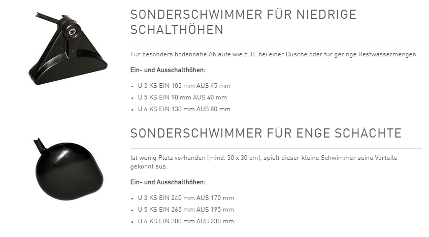 Jung Pumpen - Sonderschwimmer für niedrige Schalthöhen