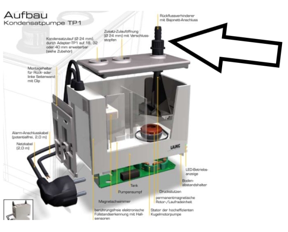 ACHTUNG: Dieser Rückflussverhinderer ist IMMER bei einer TP1 Pumpe dabei.