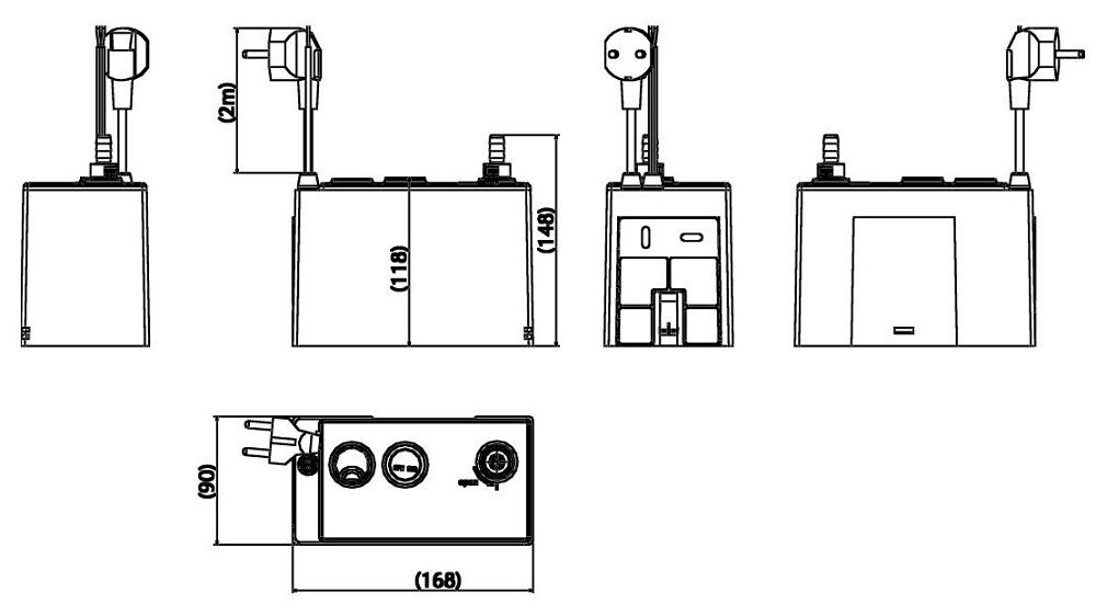 - Abmessungen (BxHxT): 168 x 118 x 90 mm