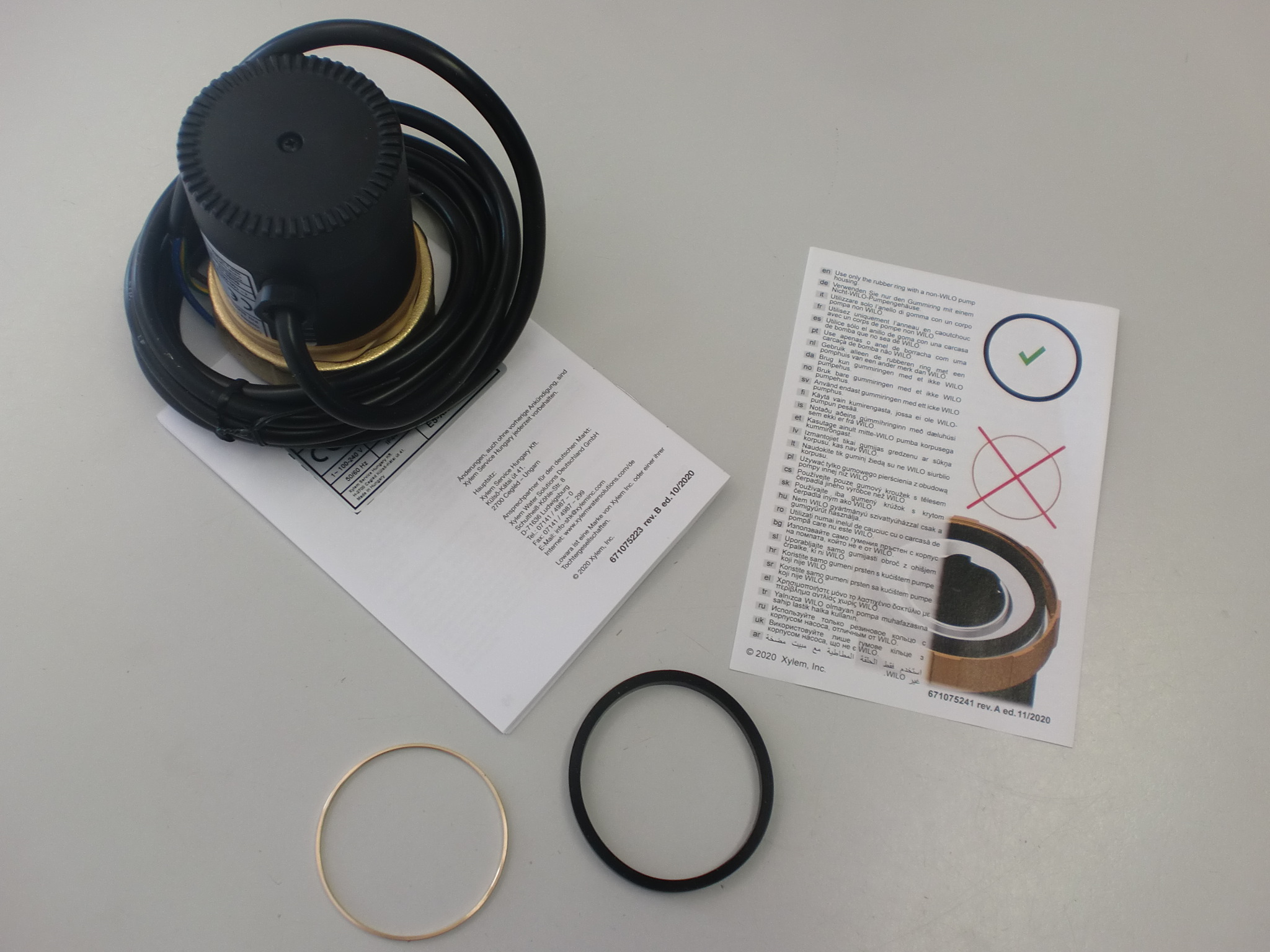 Der Motor hat zum einen eine Flachdichtung im Lieferumfang und zum anderen einen Messingring.