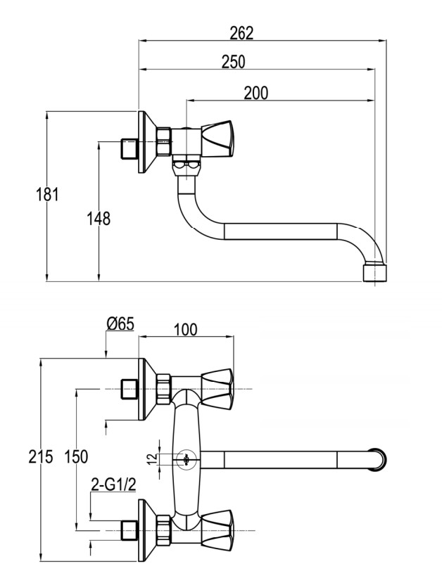 Zweigriff Spueltisch Wandarmatur Wandbatterie f. Ausgussbecken